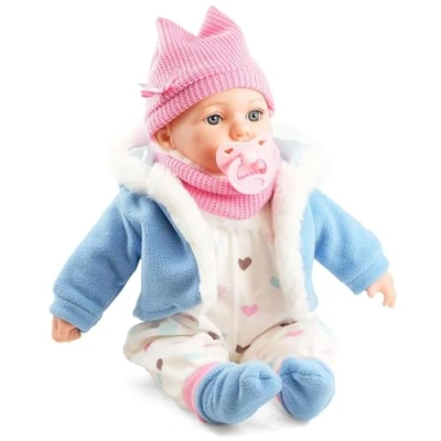 Bibi Doll 16" Realistic Baby Girl Louise With Blue Coat, Sounds And Dummy Real Life Dolls For Girls Boys Lifelike Talking Interactive Soft Body
