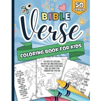 Bible Verse Coloring Book for Kids: 50 Cute Illustrations to Color with Inspirational Quotes from the Scriptures Easy Memory Verses Christian Children, Girls and Boys Ages 4+