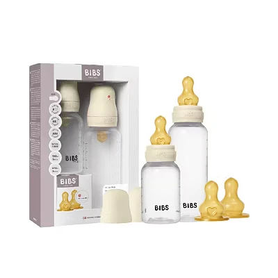 BIBS Baby Bottle Grow & Flow Starter Kit Natural Rubber Latex Anti Colic, BPA Free, Round Nipple, Slow/Medium/Fast Flow, Lightweight Easy to Clean, Suitable for Newborns 0+ Years Ivory