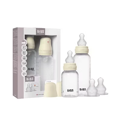 BIBS Baby Bottle Grow & Flow Starter Kit Silicone Anti Colic, BPA Free, Round Nipple, Slow/Medium/Fast Flow, Lightweight Easy to Clean, Suitable for Newborns 0+ Years Ivory