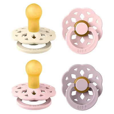 BIBS Boheme Soother 4 Pack. BPA Free Dummy Pacifier, Round Nipple. Natural Rubber Latex, Made in Denmark. 0 6 Months (Pack of 4), Blossom Mix
