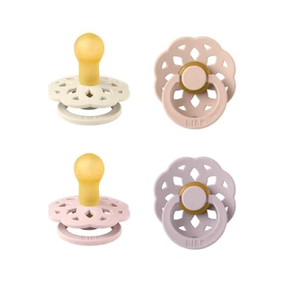 BIBS Boheme Soother 4 Pack. BPA Free Dummy Pacifier, Round Nipple. Natural Rubber Latex, Made in Denmark, Size 1 (0 6 Months), Dusky Lilac Mix