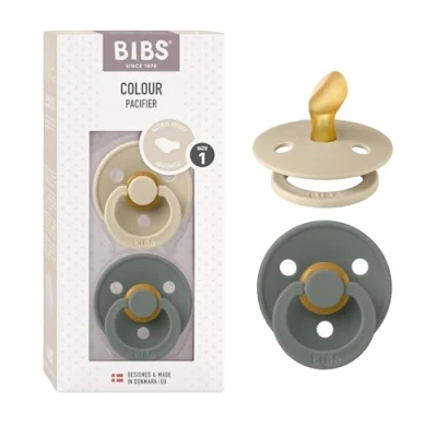 BIBS Colour Anatomical Soother 2 Pack, BPA Free Dummy Pacifier, Orthodontic Nipple. Natural Rubber Latex, Made in Denmark, Size 1 (0 6 Months), Vanilla/Pine