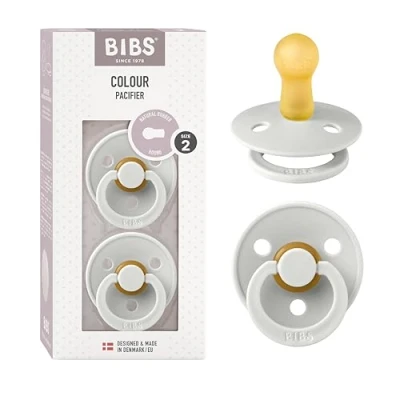 BIBS Colour Soother 2 Pack, BPA Free Dummy Pacifier, Round Nipple. Natural Rubber Latex, Made in Denmark, Size (6 18 Months), Haze