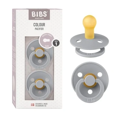 BIBS Colour Soother 2 Pack, BPA Free Dummy Pacifier, Round Nipple. Natural Rubber Latex, Size 1 (0 6 Months), Cloud/Cloud