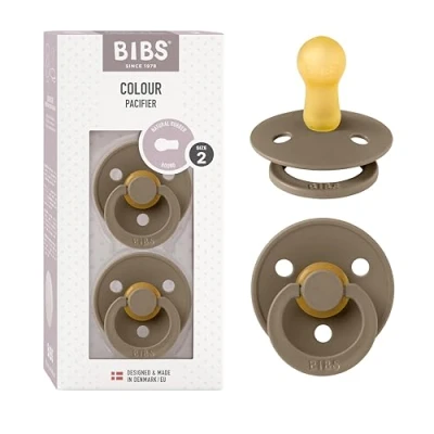 BIBS Colour Soother 2 Pack, BPA Free Dummy Pacifier, Round Nipple. Natural Rubber Latex, Size (6 18 Months), Dark Oak/Dark Oak