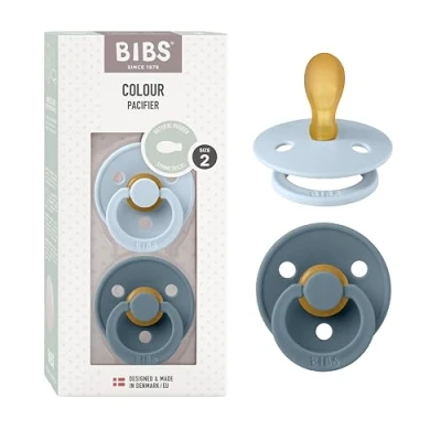 BIBS Colour Symmetrical Soother 2 Pack, BPA Free Dummy Pacifier, Nipple. Natural Rubber Latex, Made in Denmark. 6 18 Months (Pack of 2), Baby Blue/Petrol