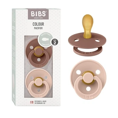 BIBS Colour Symmetrical Soother 2 Pack, BPA Free Dummy Pacifier, Nipple. Natural Rubber Latex, Made in Denmark. 6 18 Months (Pack of 2), Woodchuck/Blush