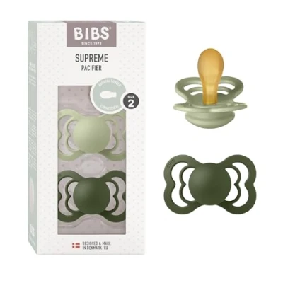 BIBS Supreme Soother 2 Pack, BPA Free Dummy Pacifier, Symmetrical Nipple. Natural Rubber Latex, Size (6 18 Months), Sage/Hunter Green