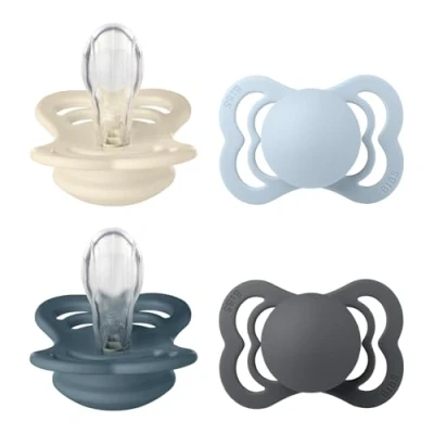 BIBS Supreme Soother 4 Pack, BPA Free Dummy Pacifier, Symmetrical Nipple. Silicone, Size 1 (0 6 Months), Ivory/Baby Blue/Petrol/Iron