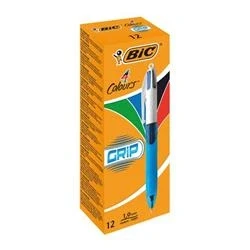 BIC 4 Colours Grip Retractable Ballpoint Pens Box of 12 Medium Point (1.0 mm) Extra Comfort Translucent Blue Barrel