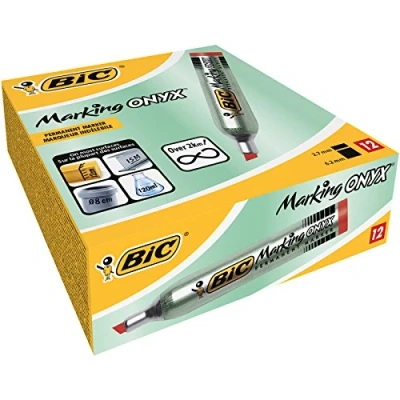 BiC Marking Onyx 1591 Chisel Tip Permanent Marker (Box of 12) Red
