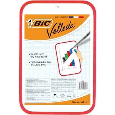 AmazonDouble-sided board 30 x 44cm Ideal for use in schools, offices and home Maintains its original white colour when used with BiC Velleda dry wipe markers Lightweight and long-lasting