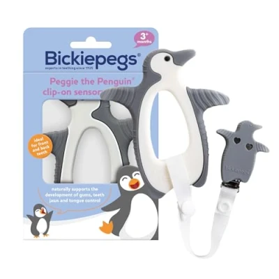 Bickiepegs Peggie The Penguin teether, Sensory Silicone Teething Toy for Baby & Toddler 3 Months +, Easy to Grip with Clip on Clothes