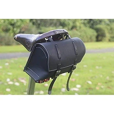 Bicycle Bag Saddle / Handlebar Frame in BLACK LEATHER Classic White Stitching XL BL WH