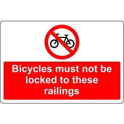 Bicycles Must not be Locked to These Railings sign 3mm Aluminium (200mm x 150mm)