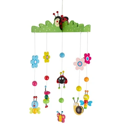 PEDAGOGICAL VALUE: The baby mobiles for cots trains your child's eyesight and also arouses curiosity. QUALITY: The babys mobile is made of high quality, sturdy wood. For sustainable and carefree fun for children. DESIGN: The babies mobiles has a beautiful design and is an eye-catcher for your baby. VERSATILE: The baby ceiling mobile is suitable for the crib, cradle and changing table. DELIVERY: 1x Mobile Baby made of wood. Edition bug; Dimensions approx. 45 x 8.66 x 30 cm. Weight approx. 140 g