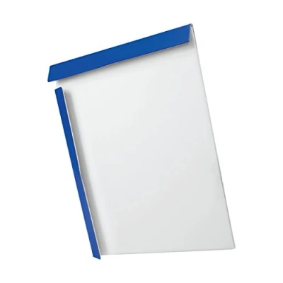 Material: sturdy recycled cardboard with plastic coating Colour: navy blue, format: for DIN A4 Capacity: approx. 50 sheets (80 g/m²) Clamp: one foldable clamp with recessed grip and four neodymium magnets on the narrow and the long side for fixing leaves Can be used on both sides for portrait and landscape orientation, the front is light grey and the back is navy blue coloured, Swiss made
