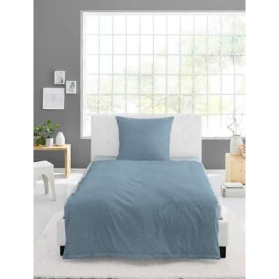 Bierbaum Bed Linen, 3000, Seersucker Plain, Designed in Germany, Blue 29, 155 x 220 + 80 cm, Comfort Size