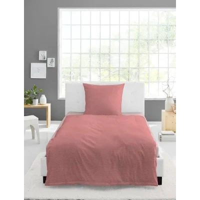 Bierbaum Bed Linen, 3000, Seersucker Uni, Designed in Germany, Rose 60, 135 x 200 + 80 cm