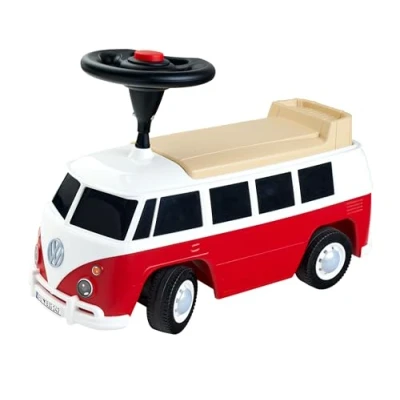 Ride-on car in cult design – officially licensed by Volkswagen: the famous VW Bulli now conquers the playgrounds and children's rooms in mini format – with real VW logo and hubcaps in chrome look Large storage compartment for toys etc. - Under the seat of the vehicle there is a spacious compartment in which there is space for everything that the children want to pack and take with them Driving fun from 18 months - The iconic VW Bully has a wide seat with small backrest, a steering wheel with integrated horn and a practical coupling for pushrods or trailers Made in Germany – The high-quality whisper wheels do not stain and are suitable for indoor and outdoor rides. The ride-on is made in Germany and is tested for maximum safety The original, made in Germany: as the inventor and market leader in the field of ride-on vehicles, we have been manufacturing bobby cars for more than 65 years and have been able to delight children and parents of different generations alike