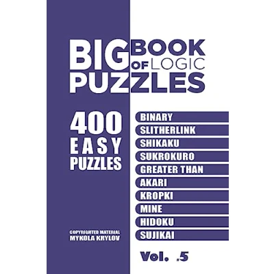Big Book Of Logic Puzzles 400 Easy Puzzles: Binary, Slitherlink, Shikaku, Sukrokuro, Greater than, Akari, Kropki, Mine, Hidoku, Sujikai (Volume 5)