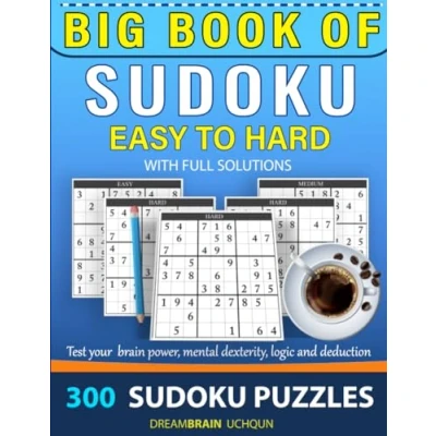Big book of Sudoku 300 puzzles with full Solutions EASY to HARD: 3 levels EASY, MEDIUM, HARD