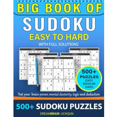 Big book of Sudoku 500+ puzzles with full Solutions EASY to HARD: 3 levels EASY, MEDIUM, HARD