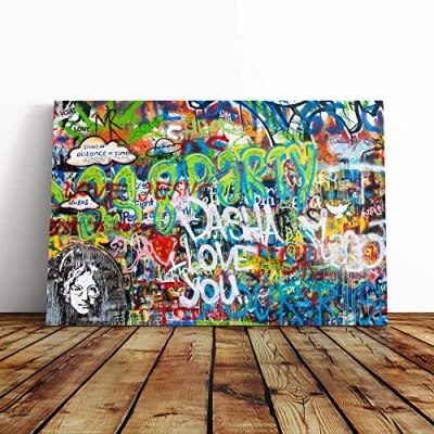 Big Box Art Canvas Print Graffiti Wall (2) Mounted and Stretched Frame Picture Home Decor for Kitchen, Living, Dining Room, Bedroom, Hallway, Multi Colour, 24x16 Inch