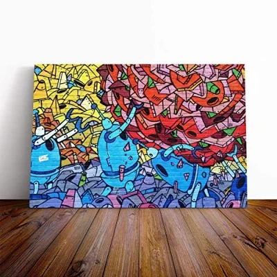 Big Box Art Canvas Print Graffiti Wall (9) Mounted and Stretched Frame Picture Home Decor for Kitchen, Living, Dining Room, Bedroom, Hallway, Multi Colour, 20x14 Inch