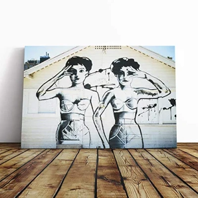 Big Box Art Canvas Print Graffiti Wall Girls Mounted and Stretched Frame Picture Home Decor for Kitchen, Living, Dining Room, Bedroom, Hallway, Multi Colour, 24x16 Inch
