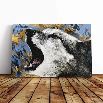 Big Box Art Canvas Print Wall Abstract Wolf (7) Mounted and Stretched Frame Picture Home Decor for Kitchen, Living, Dining Room, Bedroom, Hallway, Multi Colour, 24x16 Inch