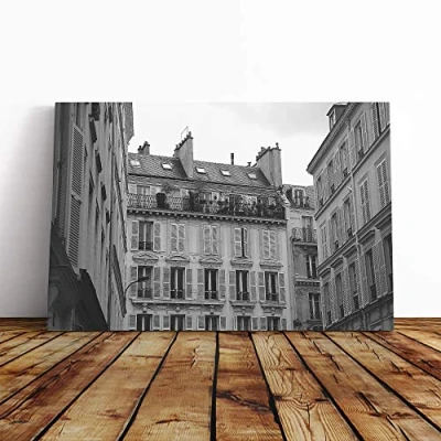 Big Box Art Canvas Print Wall Architecture French Building Mounted and Stretched Frame Picture Home Decor for Kitchen, Living, Dining Room, Bedroom, Hallway, Multi Colour, 20x14 Inch