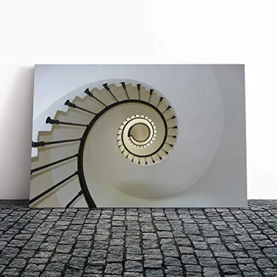 Big Box Art Canvas Print Wall Architecture Lighthouse Spiral Staircase (1) Mounted & Stretched Frame Picture Home Decor for Kitchen, Living Room, Bedroom, Hallway, Multi Colour, 20x14 Inch
