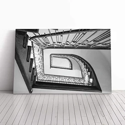 Big Box Art Canvas Print Wall Architecture Staircase (3) Mounted and Stretched Frame Picture Home Decor for Kitchen, Living, Dining Room, Bedroom, Hallway, Multi Colour, 20x14 Inch
