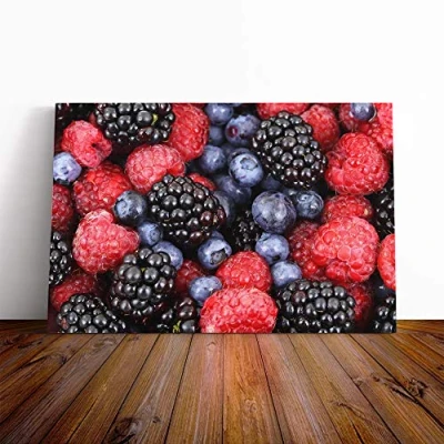 Big Box Art Canvas Print Wall Blueberries, Rasberries and Blackberries Mounted & Stretched Frame Picture Home Decor for Kitchen, Living Room, Bedroom, Hallway, Multi Colour, 30x20 Inch