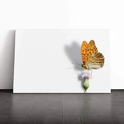 Big Box Art Canvas Print Wall Butterfly and Thistle Mounted Stretched Frame Picture Home Decor for Kitchen, Living, Dining Room, Bedroom, Hallway, Multi Colour, 20x14 Inch