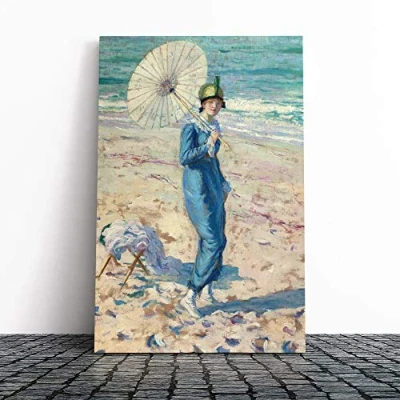 Big Box Art Canvas Print Wall Frederick Carl Frieseke Lady on The Beach Mounted & Stretched Frame Picture Home Decor for Kitchen, Living Room, Bedroom, Hallway, Multi Colour, 24x16 Inch