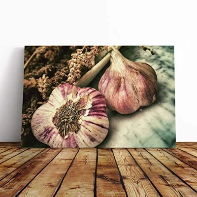 Big Box Art Canvas Print Wall Garlic Mounted and Stretched Frame Picture Home Decor for Kitchen, Living, Dining Room, Bedroom, Hallway, Multi Colour, 20x14 Inch