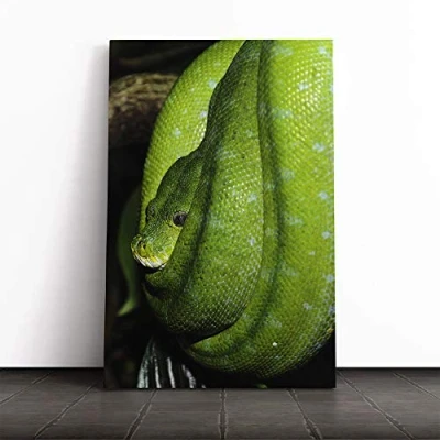Big Box Art Canvas Print Wall Green Tree Python Snake 4 Mounted and Stretched Frame Picture Home Decor for Kitchen, Living, Dining Room, Bedroom, Hallway, Multi Colour, 20x14 Inch