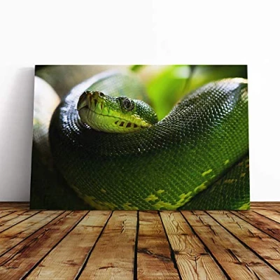 Big Box Art Canvas Print Wall Green Tree Python Snake Mounted and Stretched Frame Picture Home Decor for Kitchen, Living, Dining Room, Bedroom, Hallway, Multi Colour, 20x14 Inch