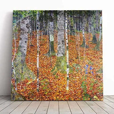 Big Box Art Canvas Print Wall Gustav Klimt Birch Forest Mounted and Stretched Frame Picture Home Decor for Kitchen, Living, Dining Room, Bedroom, Hallway, Muli Colour, 14x14 Inch