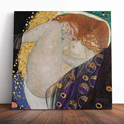Big Box Art Canvas Print Wall Gustav Klimt Danae (2) Mounted and Stretched Frame Picture Home Decor for Kitchen, Living, Dining Room, Bedroom, Hallway, Muli Colour, 14x14 Inch