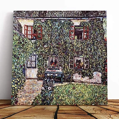 Big Box Art Canvas Print Wall Gustav Klimt House Mounted and Stretched Frame Picture Home Decor for Kitchen, Living, Dining Room, Bedroom, Hallway, Muli Colour, 14x14 Inch