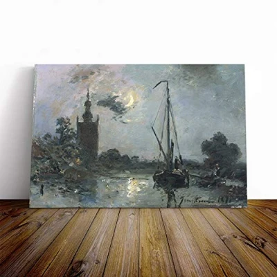 Big Box Art Canvas Print Wall Johan Jongkind Moonshine Mounted and Stretched Frame Picture Home Decor for Kitchen, Living, Dining Room, Bedroom, Hallway, Multi Colour, 30x20 Inch