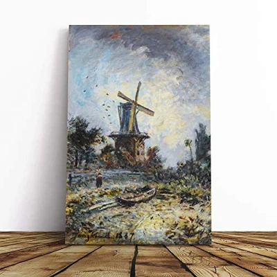 Big Box Art Canvas Print Wall Johan Jongkind Windmill Mounted and Stretched Frame Picture Home Decor for Kitchen, Living, Dining Room, Bedroom, Hallway, Multi Colour, 30x20 Inch