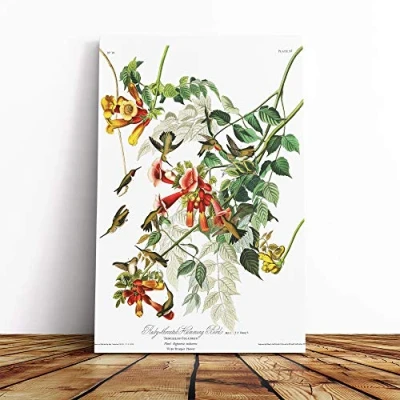 Big Box Art Canvas Print Wall John James Audubon Ruby Throated Humming Bird Mounted & Stretched Frame Picture Home Decor for Kitchen, Living Room, Bedroom, Multi Colour, 24x16 Inch