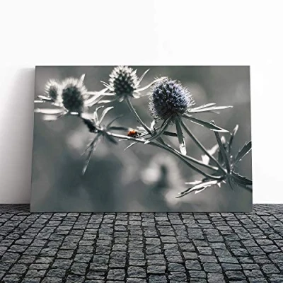 Big Box Art Canvas Print Wall Ladybird Thistle Flower Mounted and Stretched Frame Picture Home Decor for Kitchen, Living, Dining Room, Bedroom, Hallway, Multi Colour, 20x14 Inch