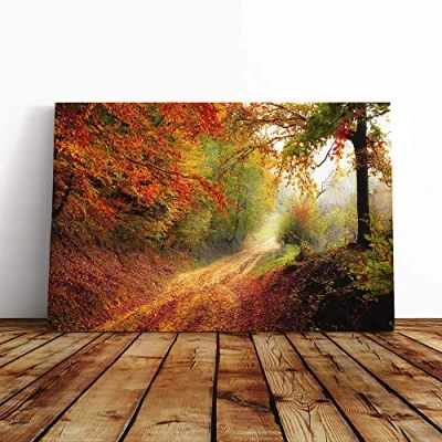 Big Box Art Canvas Print Wall Landscape Autumn Fall Woodland Forest Mounted & Stretched Frame Picture Home Decor for Kitchen, Living Room, Bedroom, Hallway, Multi Colour, 30x20 Inch
