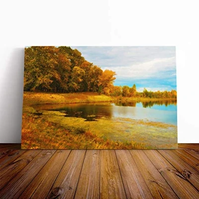 Big Box Art Canvas Print Wall Landscape Autumn Forest and Lake Mounted Stretched Frame Picture Home Decor for Kitchen, Living Room, Bedroom, Hallway, Multi Colour, 20x14 Inch